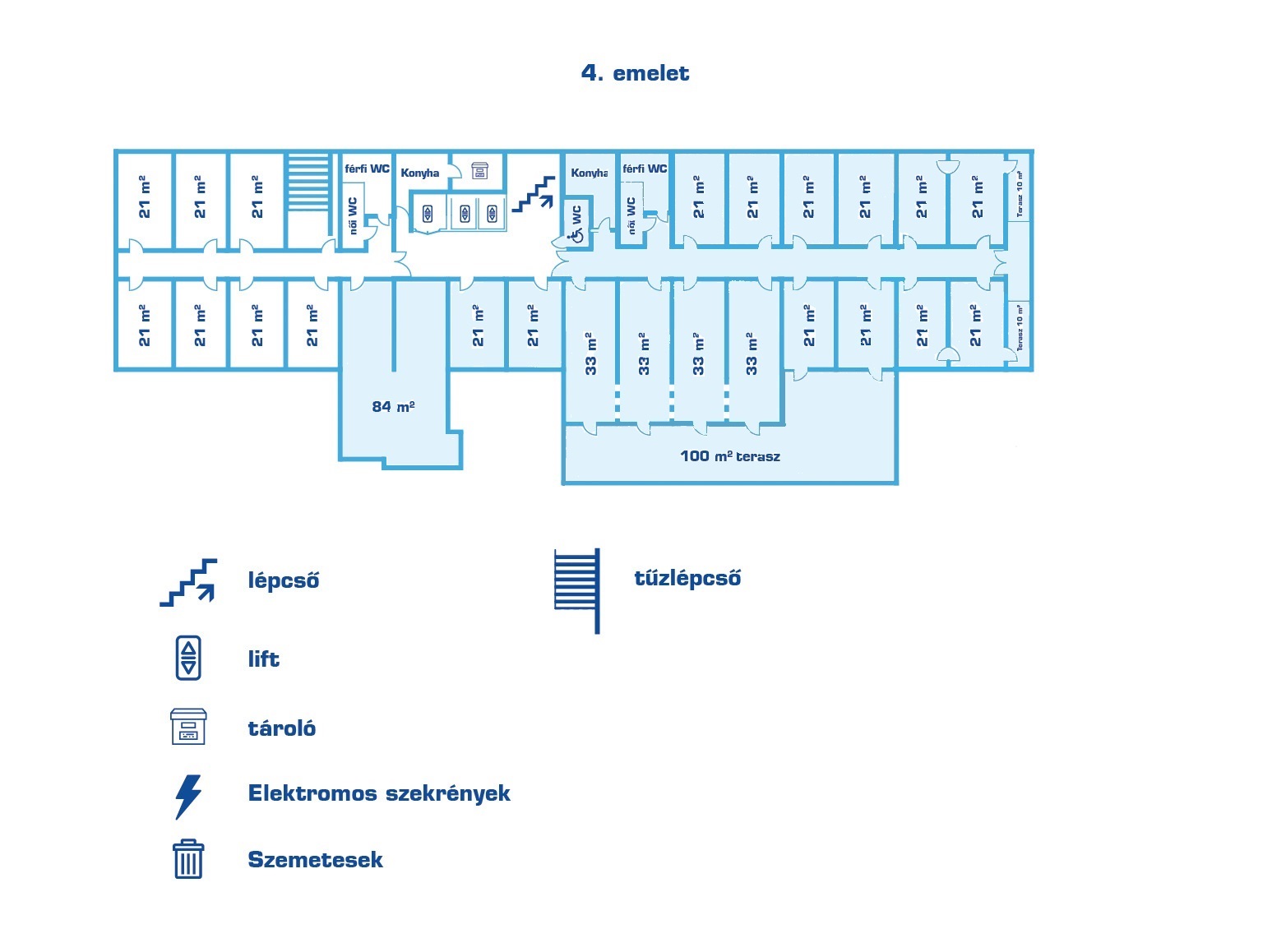 5th floor: 21 m2 (6 units)