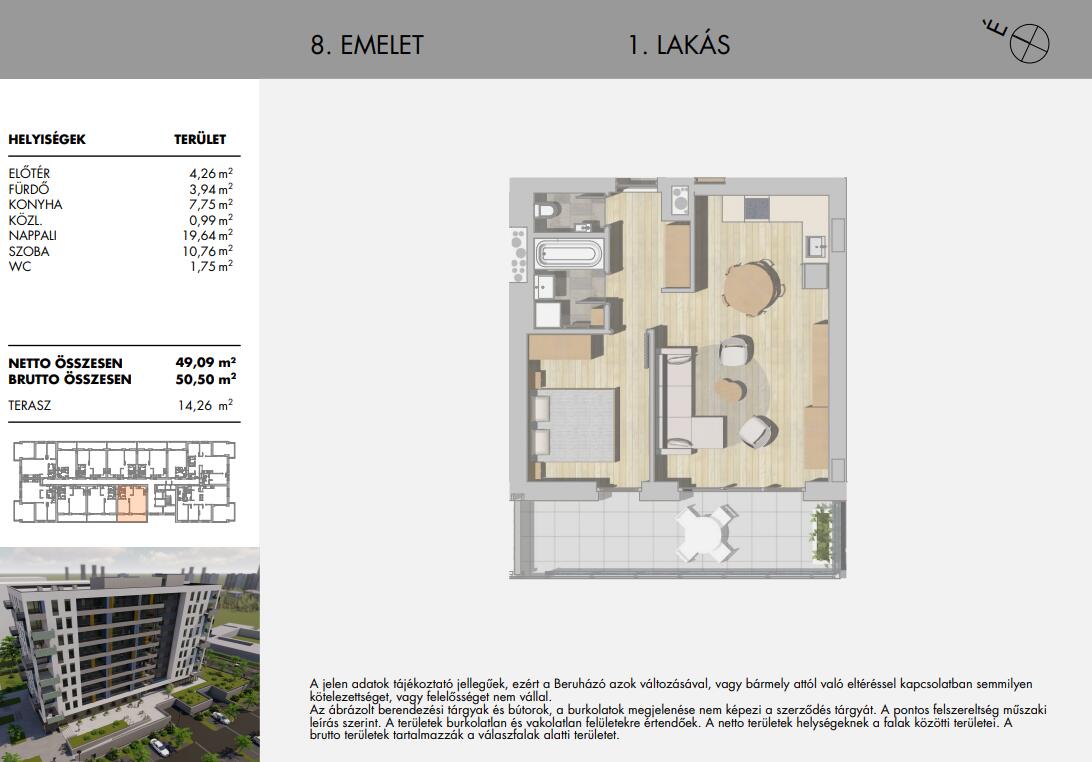 Sunny, west-facing apartment with open-plan kitchen and living room + 1 bedroom with a 14.26 m2 terrace