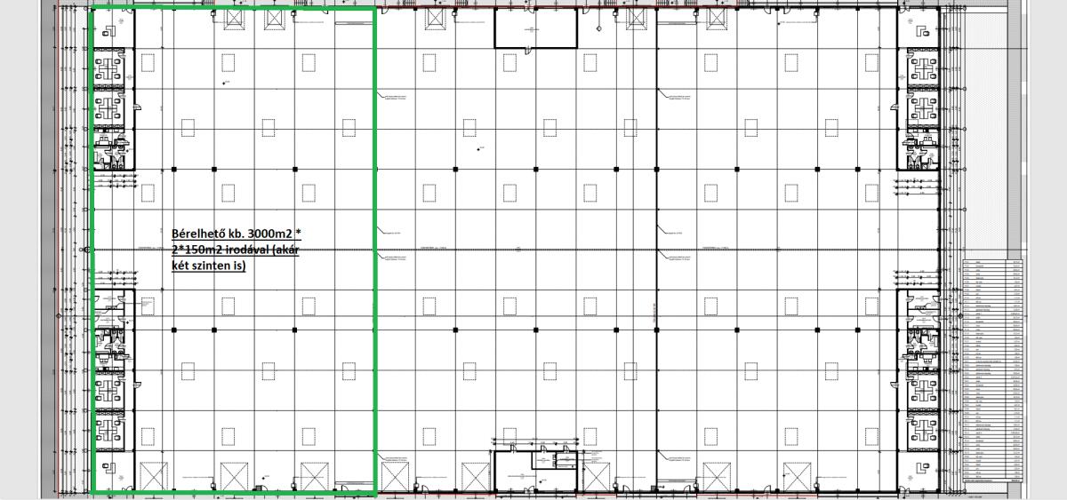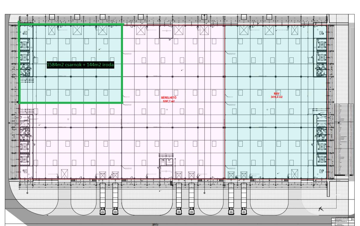 O1 csarnok 10500m2 -  1754m2 KIADÓ, irodával, szintbeli kapukkal.