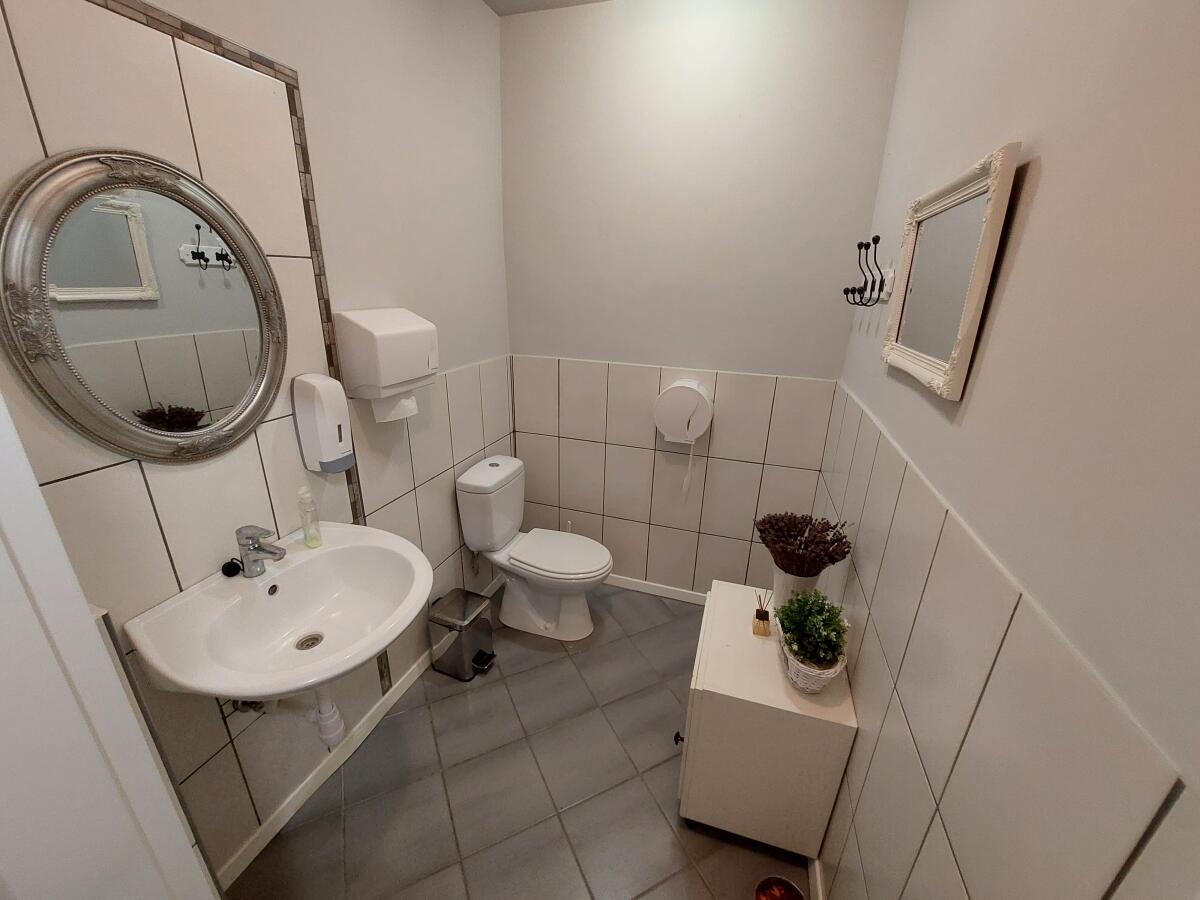 Irodahelyiségek, öltözők, zuhanyzók, raktár és egyéb funkcióra isalkalmas területek kerültek kialakításra.