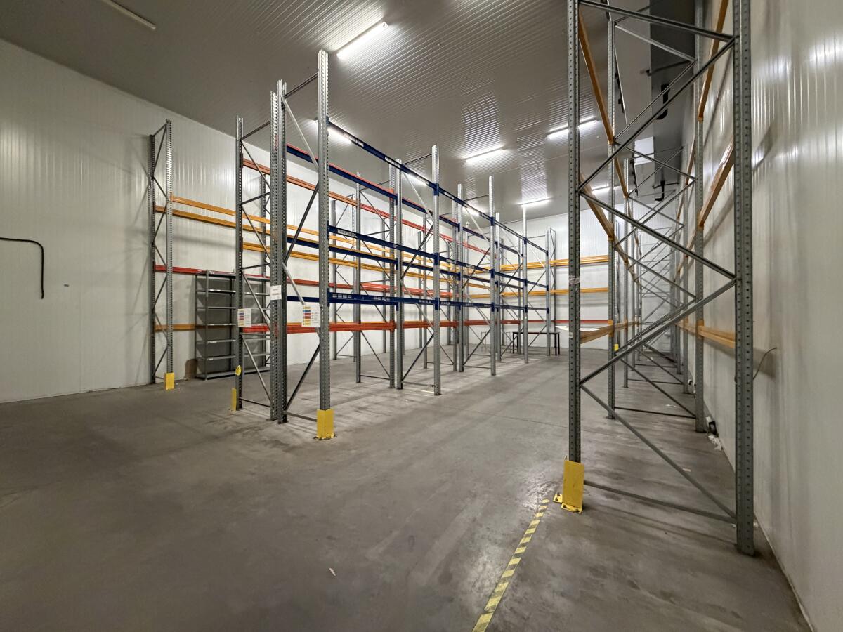 1822,15 m2 alapterületű raktárcsarnok 6,94 m-es belmagassággal, 2 hűtő helyiséggel, áruátvevő és árukiadó helyiségekkel. A raktárrészhez a következő rendeltetési célú raktárhelyiségek tartoznak: